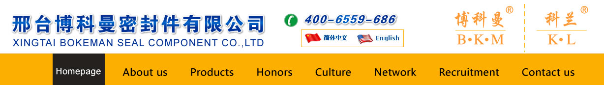 Xingtai Bokeman Seal Component CO.,LTD.Is located in the five generation of imperial Hebei Guangzong County,convenient transportation,Xing Pro high-speed,Xing Qing xian cross West line,the fangs,Xing Huang railway across North and south,Beijing Guangzhou railway,Beijing Kowloon railway,106 State Road 107 State Road vertical wing hatchback.Is the set design,production,sales as one of professional seal manufacturers.