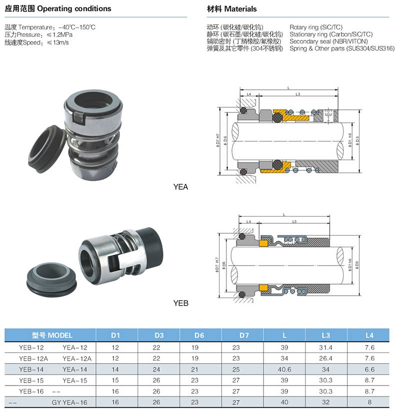 不銹鋼多級(jí)離心泵用機(jī)械密封件