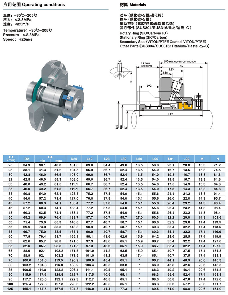 單端面集裝式機械密封件